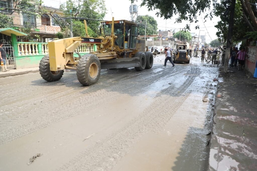 En este punto se dispone de 27 retroexcavadoras, 30 camiones de volteo, cuatro vactors y dos góndolas, para reforzar el retiro de lodo, desechos y enseres domésticos; la limpieza inicia con la recolección de muebles y pertenencias dañadas, seguida del lavado profundo de calles y viviendas, como parte del proceso de saneamiento integral.