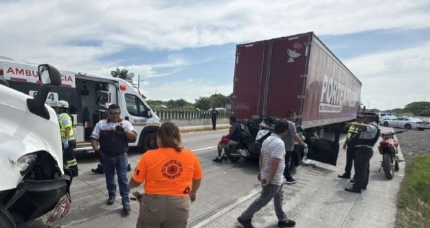Fuerzas de tarea de los tres órdenes de gobierno atienden el accidente vehicular registrado en la autopista Córdoba–Veracruz, a la altura del municipio de Carrillo Puerto, entre un autobús de pasajeros y un tráiler.
